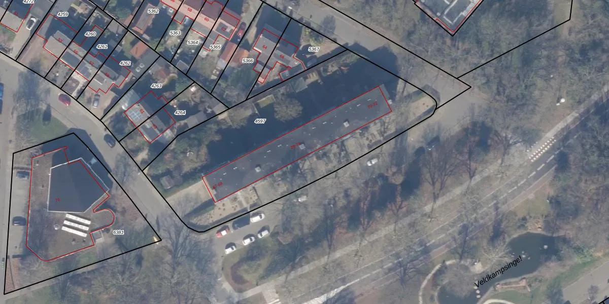 Veldkamp 50-A is gelegen op kadastraal perceel HDW00D4597. Deze kadastrale aanduiding is uniek en wordt gebruikt door het Kadaster om eigendomsrechten en andere zakelijke rechten vast te leggen. Het perceel maakt onderdeel uit van de kadastrale gemeente Harderwijk.