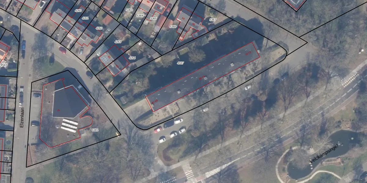 Het perceel waarop Veldkamp 58 staat heeft een oppervlakte van 2770 m². Dit is een zeer groot perceel. De perceeloppervlakte wordt geregistreerd door het Kadaster. Gedetailleerde informatie over de maten van dit perceel kunt u vinden in het rapport Kadastrale kaart met maatvoering van Veldkamp 58.