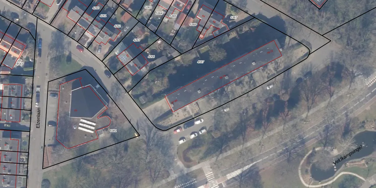 Het perceel waarop Veldkamp 66 staat heeft een oppervlakte van 2770 m². Dit is een zeer groot perceel. De perceeloppervlakte wordt geregistreerd door het Kadaster. Gedetailleerde informatie over de maten van dit perceel kunt u vinden in het rapport Kadastrale kaart met maatvoering van Veldkamp 66.