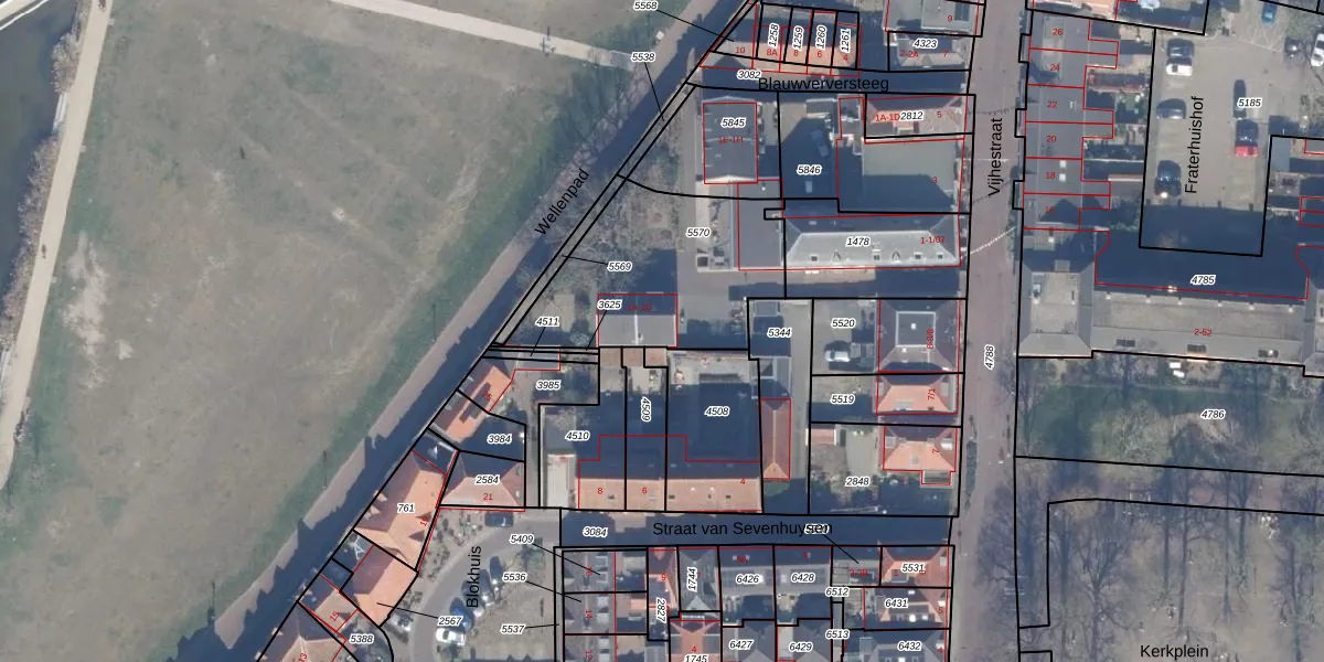 Het perceel waarop Vijhestraat 1-C staat heeft een oppervlakte van 724 m². Dit is een groot perceel. De perceeloppervlakte wordt geregistreerd door het Kadaster. Gedetailleerde informatie over de maten van dit perceel kunt u vinden in het rapport Kadastrale kaart met maatvoering van Vijhestraat 1-C.