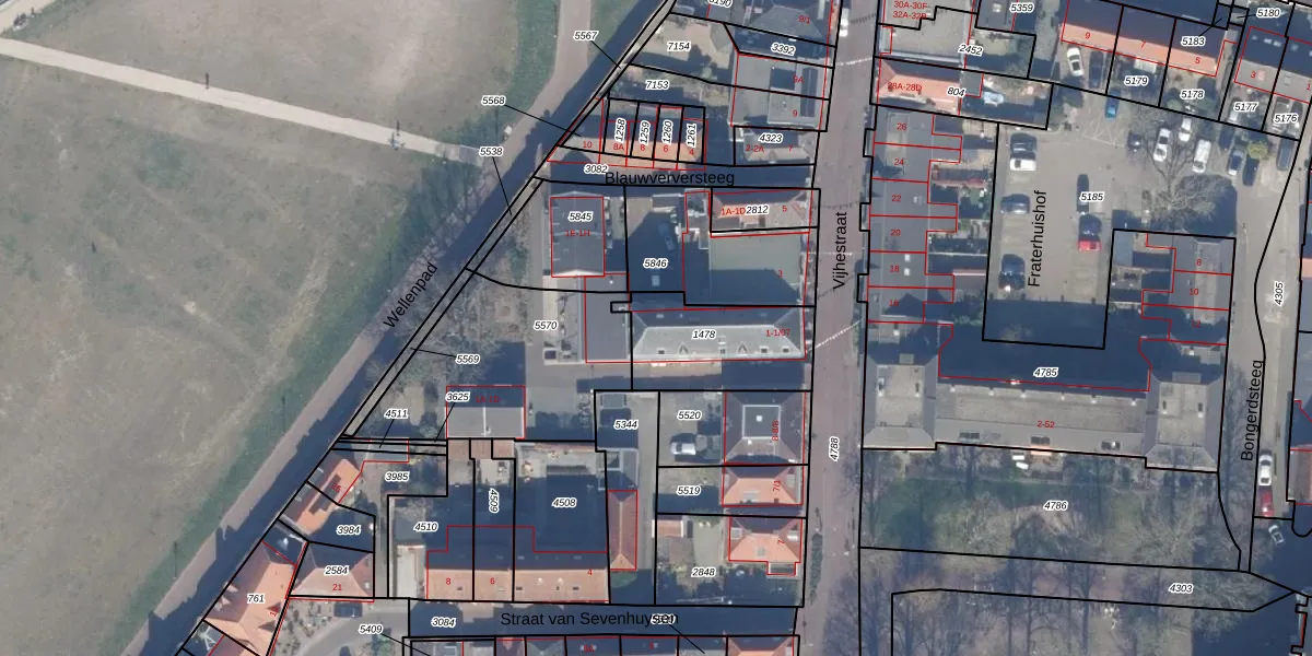 Het perceel waarop Vijhestraat 1-05 staat heeft een oppervlakte van 335 m². Dit is een groot perceel. De perceeloppervlakte wordt geregistreerd door het Kadaster. Gedetailleerde informatie over de maten van dit perceel kunt u vinden in het rapport Kadastrale kaart met maatvoering van Vijhestraat 1-05.