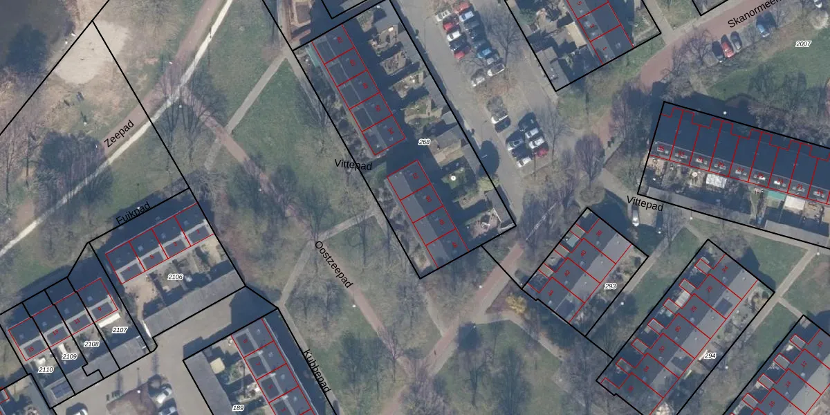 Het perceel waarop Vittepad 50 staat heeft een oppervlakte van 1660 m². Dit is een zeer groot perceel. De perceeloppervlakte wordt geregistreerd door het Kadaster. Gedetailleerde informatie over de maten van dit perceel kunt u vinden in het rapport Kadastrale kaart met maatvoering van Vittepad 50.