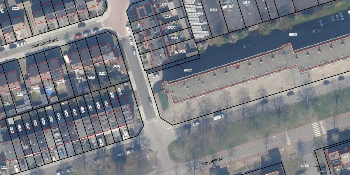 Het perceel waarop Vondellaan 181 staat heeft een oppervlakte van 6035 m². Dit is een zeer groot perceel. De perceeloppervlakte wordt geregistreerd door het Kadaster. Gedetailleerde informatie over de maten van dit perceel kunt u vinden in het rapport Kadastrale kaart met maatvoering van Vondellaan 181.