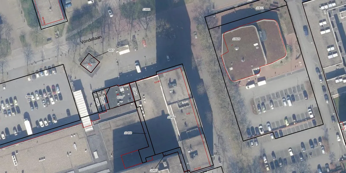 Het perceel waarop Vondellaan 64 staat heeft een oppervlakte van 1600 m². Dit is een zeer groot perceel. De perceeloppervlakte wordt geregistreerd door het Kadaster. Gedetailleerde informatie over de maten van dit perceel kunt u vinden in het rapport Kadastrale kaart met maatvoering van Vondellaan 64.