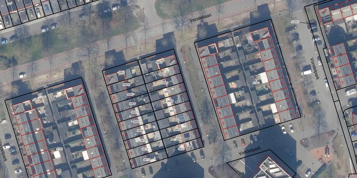 Het perceel waarop Vondelpark 69 staat heeft een oppervlakte van 113 m². Dit is een middelgroot perceel. De perceeloppervlakte wordt geregistreerd door het Kadaster. Gedetailleerde informatie over de maten van dit perceel kunt u vinden in het rapport Kadastrale kaart met maatvoering van Vondelpark 69.