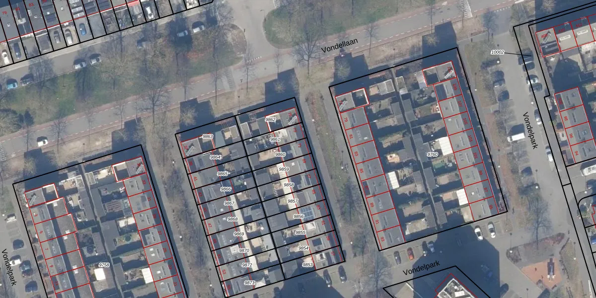 Het perceel waarop Vondelpark 71 staat heeft een oppervlakte van 113 m². Dit is een middelgroot perceel. De perceeloppervlakte wordt geregistreerd door het Kadaster. Gedetailleerde informatie over de maten van dit perceel kunt u vinden in het rapport Kadastrale kaart met maatvoering van Vondelpark 71.
