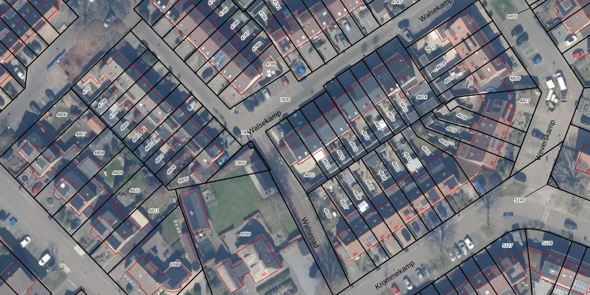 Het perceel waarop Walsekamp 20 staat heeft een oppervlakte van 218 m². Dit is een middelgroot perceel. De perceeloppervlakte wordt geregistreerd door het Kadaster. Gedetailleerde informatie over de maten van dit perceel kunt u vinden in het rapport Kadastrale kaart met maatvoering van Walsekamp 20.