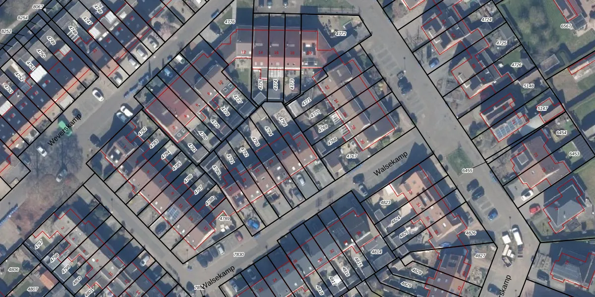 Het perceel waarop Walsekamp 27 staat heeft een oppervlakte van 216 m². Dit is een middelgroot perceel. De perceeloppervlakte wordt geregistreerd door het Kadaster. Gedetailleerde informatie over de maten van dit perceel kunt u vinden in het rapport Kadastrale kaart met maatvoering van Walsekamp 27.