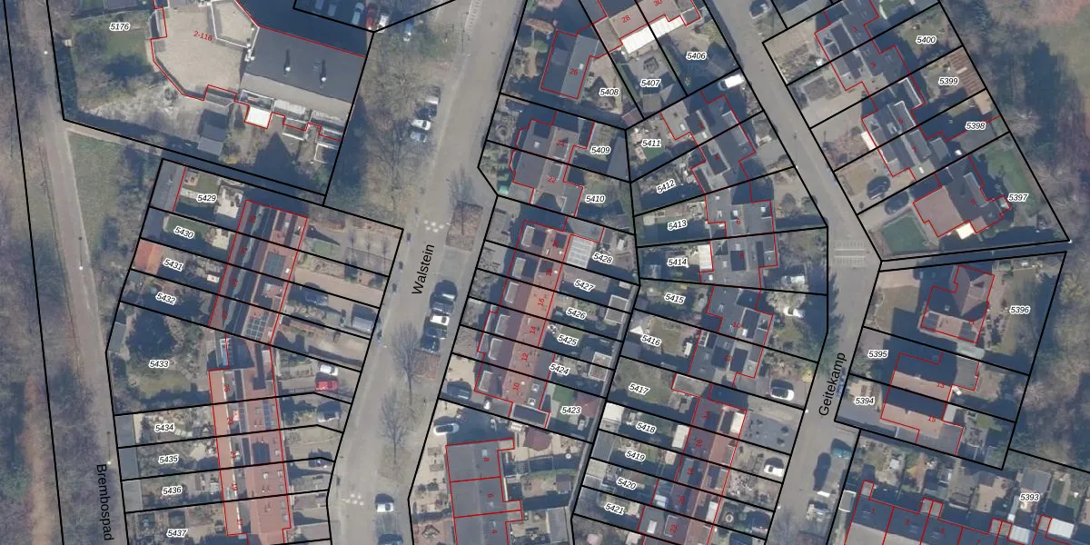 Het perceel waarop Walstein 18 staat heeft een oppervlakte van 162 m². Dit is een middelgroot perceel. De perceeloppervlakte wordt geregistreerd door het Kadaster. Gedetailleerde informatie over de maten van dit perceel kunt u vinden in het rapport Kadastrale kaart met maatvoering van Walstein 18.
