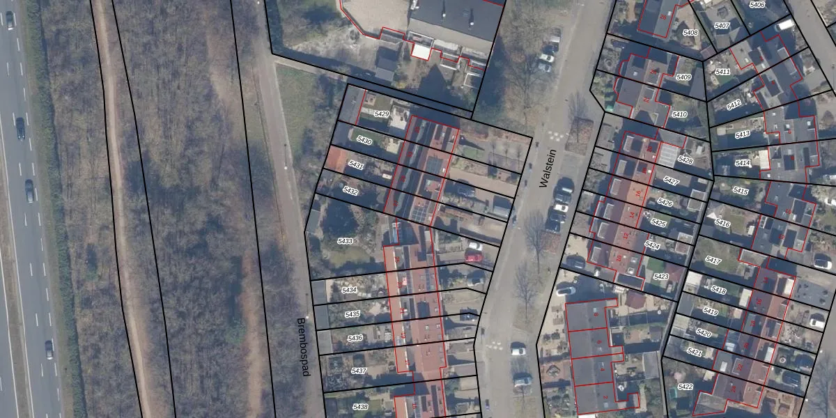 Gebruik de zoekbalk of klik op een perceel voor informatie over de adressen binnen dit perceel.