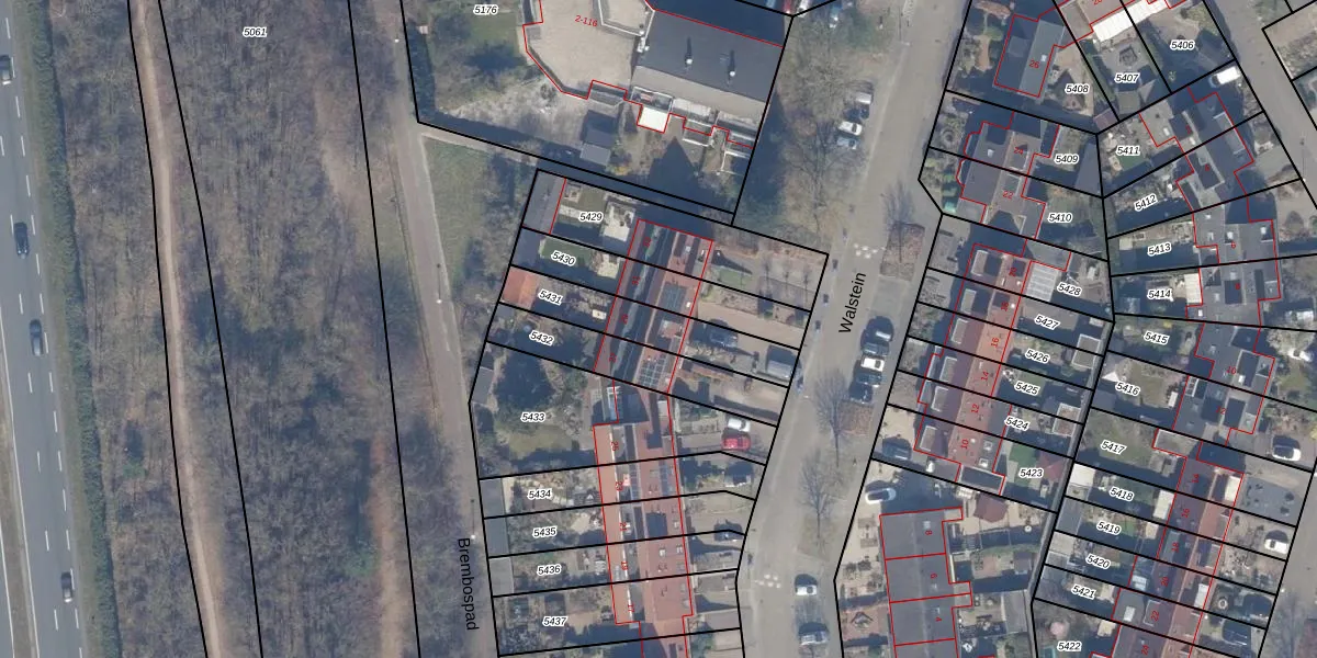 Gebruik de zoekbalk of klik op een perceel voor informatie over de adressen binnen dit perceel.
