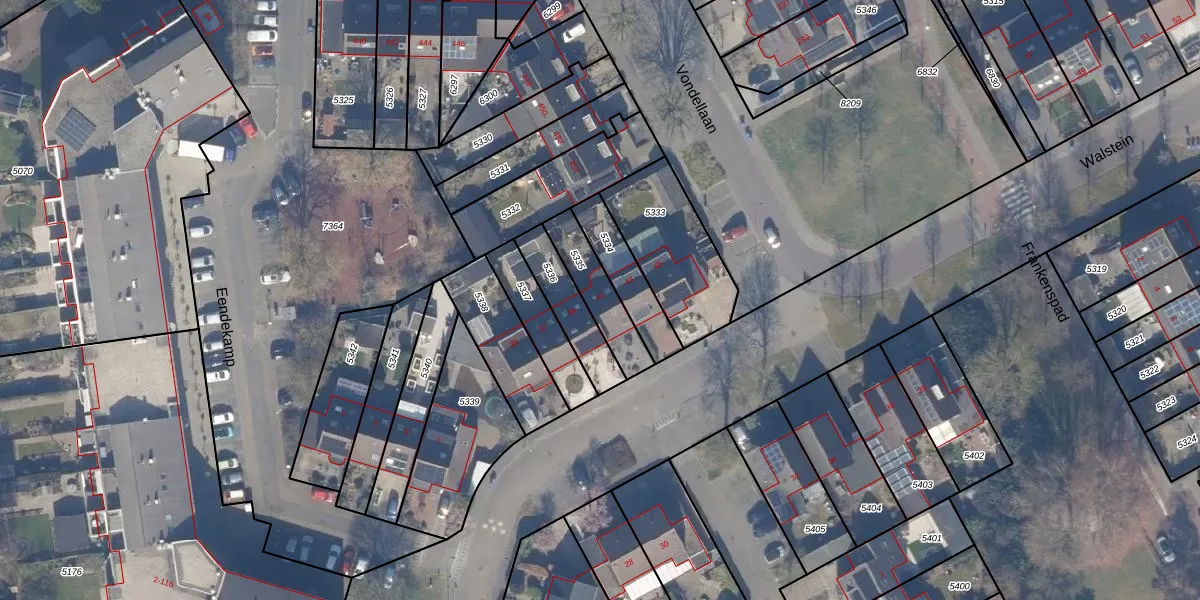 Gebruik de zoekbalk of klik op een perceel voor informatie over de adressen binnen dit perceel.