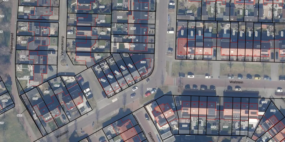 Het perceel waarop Walstein 61-B staat heeft een oppervlakte van 218 m². Dit is een middelgroot perceel. De perceeloppervlakte wordt geregistreerd door het Kadaster. Gedetailleerde informatie over de maten van dit perceel kunt u vinden in het rapport Kadastrale kaart met maatvoering van Walstein 61-B.
