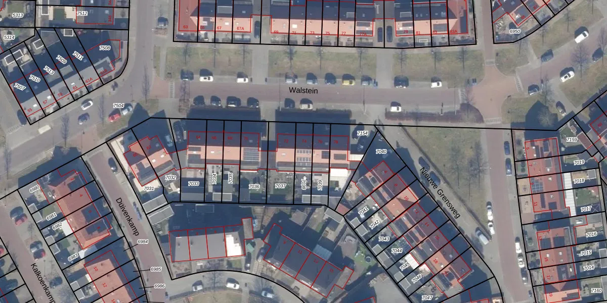 Het perceel waarop Walstein 74 staat heeft een oppervlakte van 154 m². Dit is een middelgroot perceel. De perceeloppervlakte wordt geregistreerd door het Kadaster. Gedetailleerde informatie over de maten van dit perceel kunt u vinden in het rapport Kadastrale kaart met maatvoering van Walstein 74.