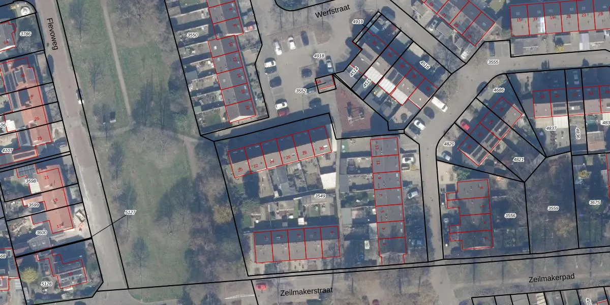 Het perceel waarop Werfstraat 28 staat heeft een oppervlakte van 2853 m². Dit is een zeer groot perceel. De perceeloppervlakte wordt geregistreerd door het Kadaster. Gedetailleerde informatie over de maten van dit perceel kunt u vinden in het rapport Kadastrale kaart met maatvoering van Werfstraat 28.