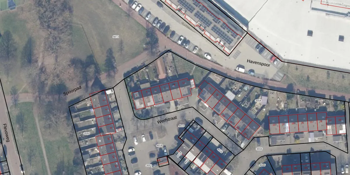 Het perceel waarop Werfstraat 9 staat heeft een oppervlakte van 3660 m². Dit is een zeer groot perceel. De perceeloppervlakte wordt geregistreerd door het Kadaster. Gedetailleerde informatie over de maten van dit perceel kunt u vinden in het rapport Kadastrale kaart met maatvoering van Werfstraat 9.
