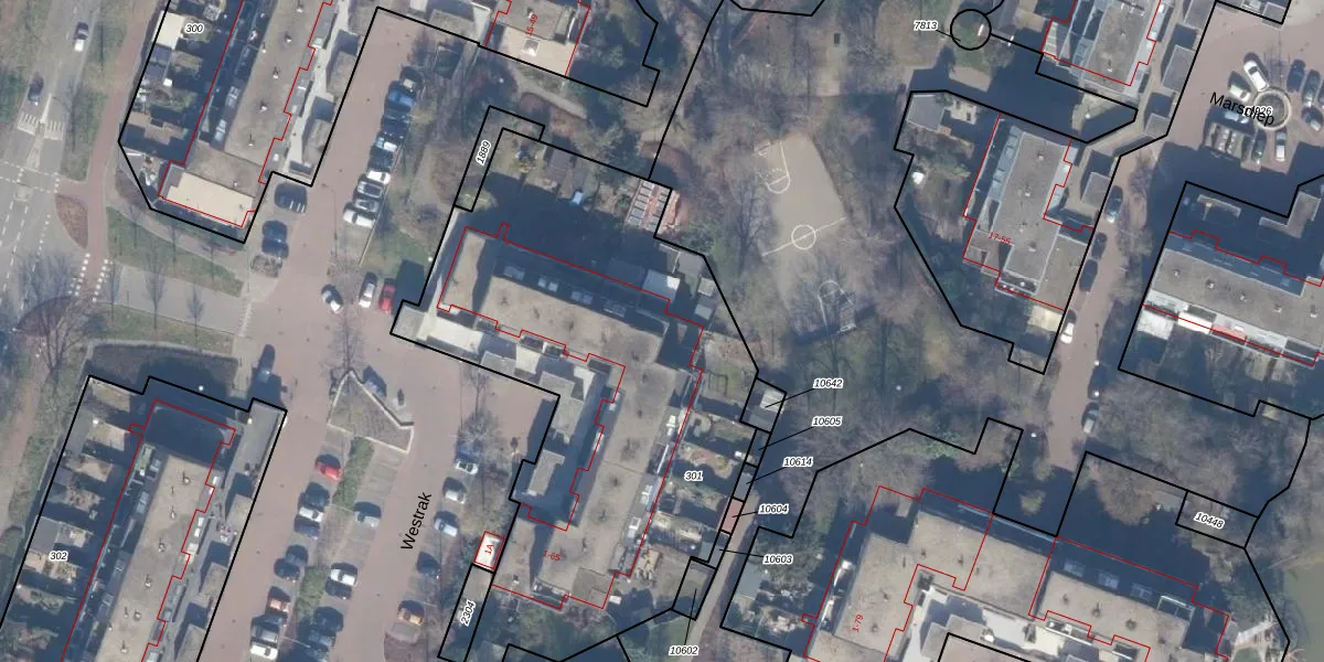 Het perceel waarop Westrak 55 staat heeft een oppervlakte van 2577 m². Dit is een zeer groot perceel. De perceeloppervlakte wordt geregistreerd door het Kadaster. Gedetailleerde informatie over de maten van dit perceel kunt u vinden in het rapport Kadastrale kaart met maatvoering van Westrak 55.