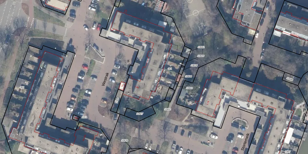 Het perceel waarop Westrak 61 staat heeft een oppervlakte van 2577 m². Dit is een zeer groot perceel. De perceeloppervlakte wordt geregistreerd door het Kadaster. Gedetailleerde informatie over de maten van dit perceel kunt u vinden in het rapport Kadastrale kaart met maatvoering van Westrak 61.