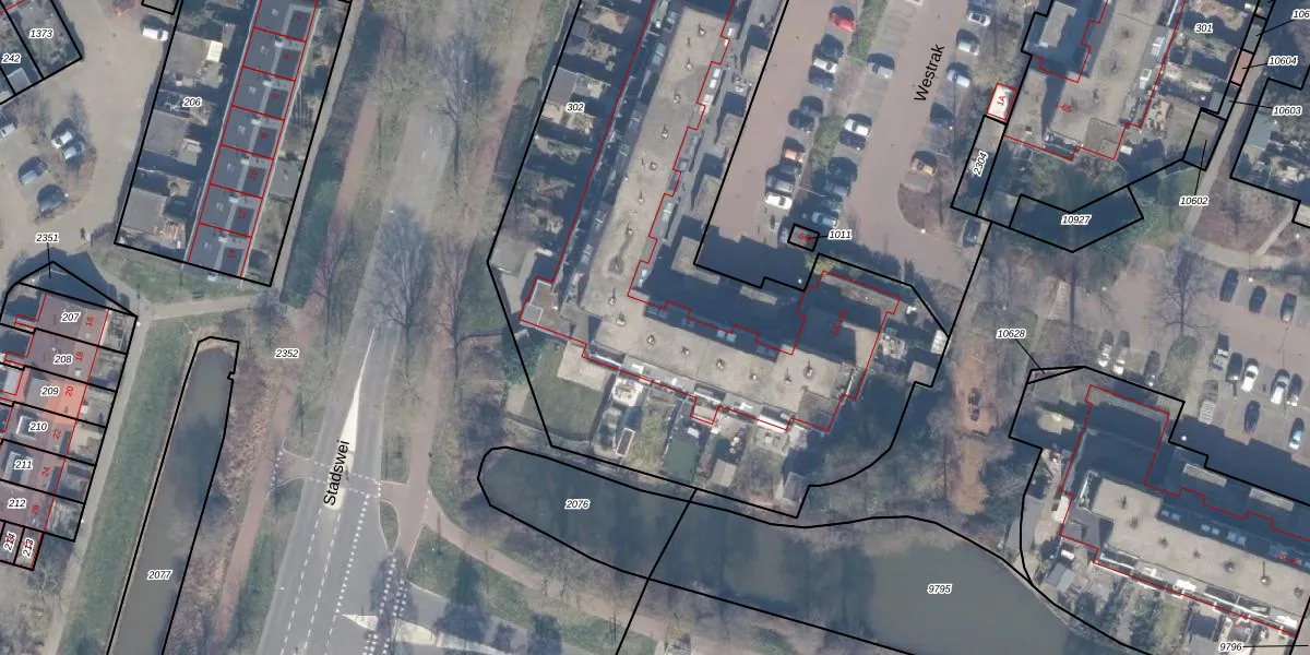 Het perceel waarop Westrak 73 staat heeft een oppervlakte van 3468 m². Dit is een zeer groot perceel. De perceeloppervlakte wordt geregistreerd door het Kadaster. Gedetailleerde informatie over de maten van dit perceel kunt u vinden in het rapport Kadastrale kaart met maatvoering van Westrak 73.