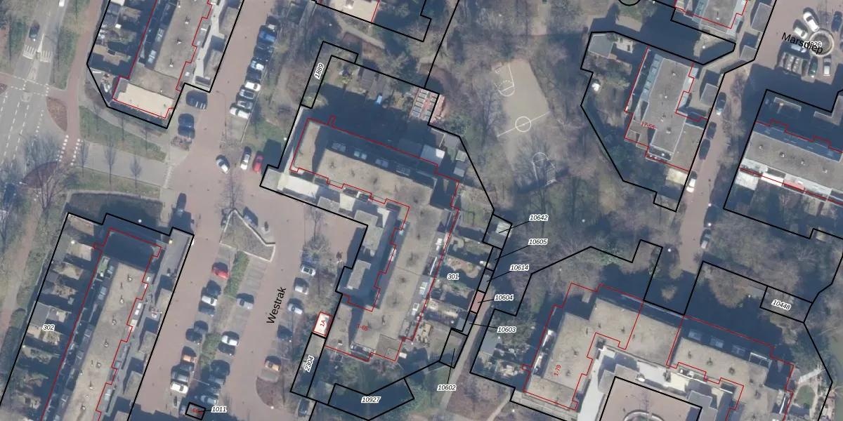 Het perceel waarop Westrak 8 staat heeft een oppervlakte van 2577 m². Dit is een zeer groot perceel. De perceeloppervlakte wordt geregistreerd door het Kadaster. Gedetailleerde informatie over de maten van dit perceel kunt u vinden in het rapport Kadastrale kaart met maatvoering van Westrak 8.