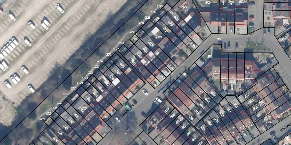 Het perceel waarop Weverskamp 31 staat heeft een oppervlakte van 183 m². Dit is een middelgroot perceel. De perceeloppervlakte wordt geregistreerd door het Kadaster. Gedetailleerde informatie over de maten van dit perceel kunt u vinden in het rapport Kadastrale kaart met maatvoering van Weverskamp 31.