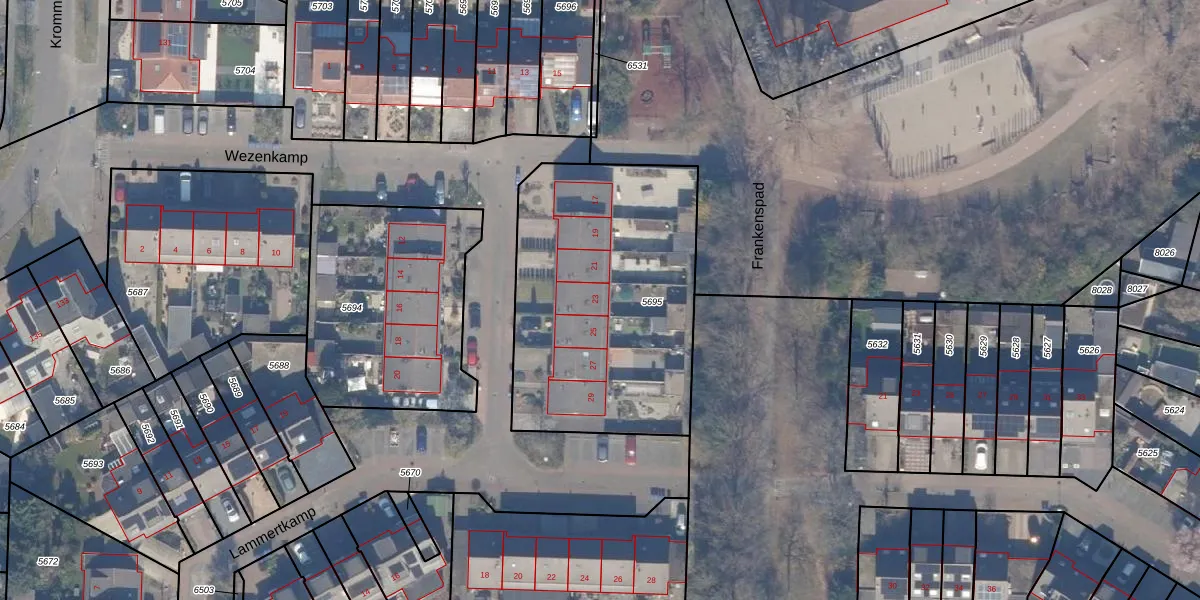 Wezenkamp 23 is gelegen op kadastraal perceel HDW00B5695. Deze kadastrale aanduiding is uniek en wordt gebruikt door het Kadaster om eigendomsrechten en andere zakelijke rechten vast te leggen. Het perceel maakt onderdeel uit van de kadastrale gemeente Harderwijk.