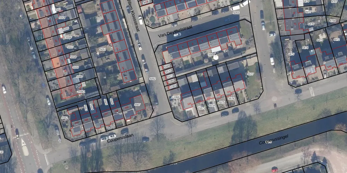 Het perceel waarop Willem Kloosstraat 21 staat heeft een oppervlakte van 24 m². Dit is een klein perceel. De perceeloppervlakte wordt geregistreerd door het Kadaster. Gedetailleerde informatie over de maten van dit perceel kunt u vinden in het rapport Kadastrale kaart met maatvoering van Willem Kloosstraat 21.