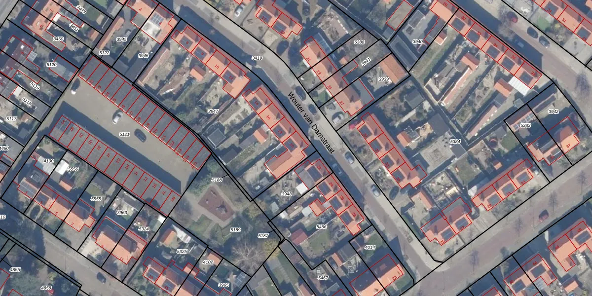 Het perceel waarop Wouter van Damstraat 20 staat heeft een oppervlakte van 1666 m². Dit is een zeer groot perceel. De perceeloppervlakte wordt geregistreerd door het Kadaster. Gedetailleerde informatie over de maten van dit perceel kunt u vinden in het rapport Kadastrale kaart met maatvoering van Wouter van Damstraat 20.