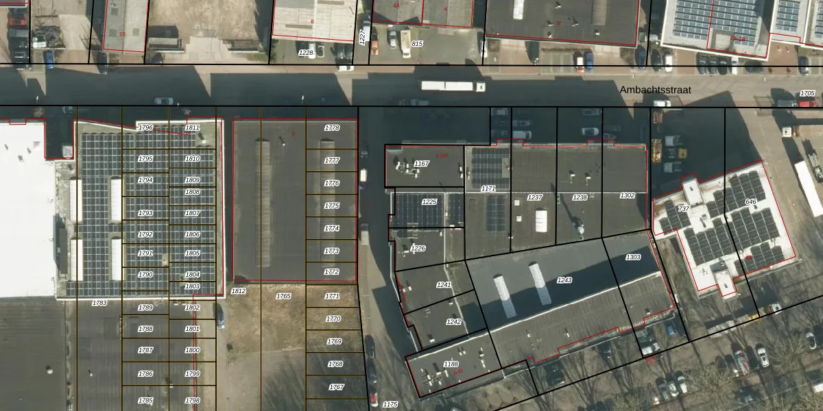 Het perceel waarop Ambachtsstraat 1-G staat heeft een oppervlakte van 172 m². Dit is een middelgroot perceel. De perceeloppervlakte wordt geregistreerd door het Kadaster. Gedetailleerde informatie over de maten van dit perceel kunt u vinden in het rapport Kadastrale kaart met maatvoering van Ambachtsstraat 1-G.