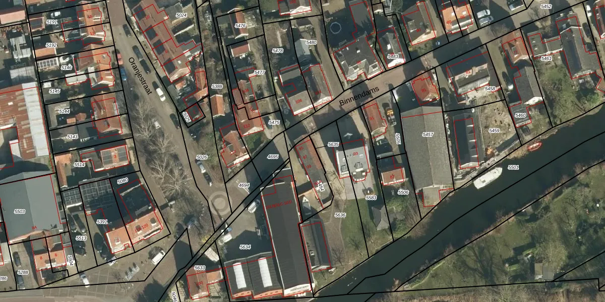 Het perceel waarop Binnendams 95 staat heeft een oppervlakte van 250 m². Dit is een middelgroot perceel. De perceeloppervlakte wordt geregistreerd door het Kadaster. Gedetailleerde informatie over de maten van dit perceel kunt u vinden in het rapport Kadastrale kaart met maatvoering van Binnendams 95.