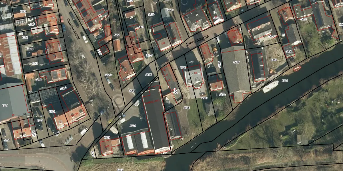 Het perceel waarop Binnendams 97 staat heeft een oppervlakte van 250 m². Dit is een middelgroot perceel. De perceeloppervlakte wordt geregistreerd door het Kadaster. Gedetailleerde informatie over de maten van dit perceel kunt u vinden in het rapport Kadastrale kaart met maatvoering van Binnendams 97.