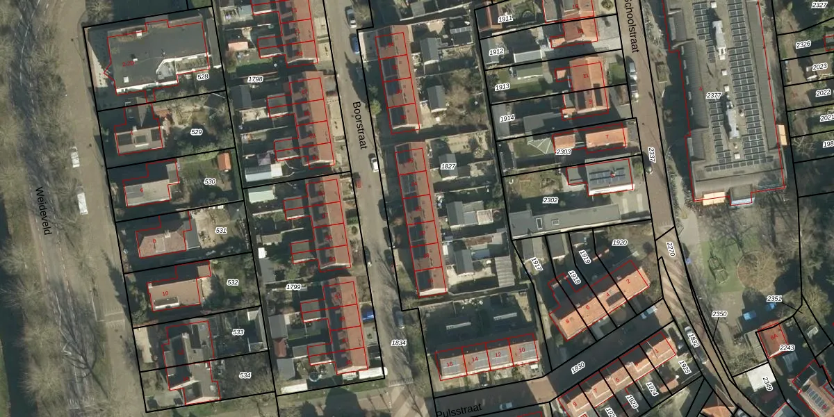 Het perceel waarop Boorstraat 22 staat heeft een oppervlakte van 3190 m². Dit is een zeer groot perceel. De perceeloppervlakte wordt geregistreerd door het Kadaster. Gedetailleerde informatie over de maten van dit perceel kunt u vinden in het rapport Kadastrale kaart met maatvoering van Boorstraat 22.