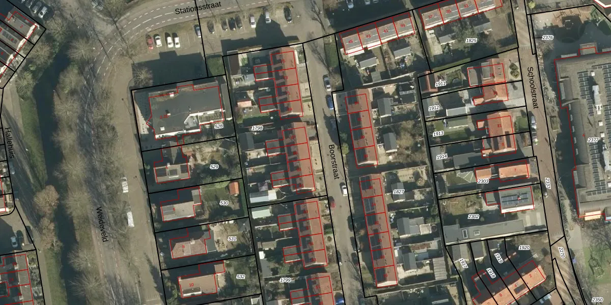Het perceel waarop Boorstraat 65 staat heeft een oppervlakte van 1338 m². Dit is een zeer groot perceel. De perceeloppervlakte wordt geregistreerd door het Kadaster. Gedetailleerde informatie over de maten van dit perceel kunt u vinden in het rapport Kadastrale kaart met maatvoering van Boorstraat 65.