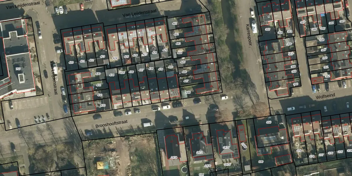 Gebruik de zoekbalk of klik op een perceel voor informatie over de adressen binnen dit perceel.