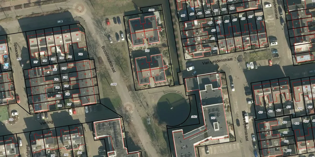 Het perceel waarop Brooshooftstraat 15 staat heeft een oppervlakte van 1201 m². Dit is een zeer groot perceel. De perceeloppervlakte wordt geregistreerd door het Kadaster. Gedetailleerde informatie over de maten van dit perceel kunt u vinden in het rapport Kadastrale kaart met maatvoering van Brooshooftstraat 15.