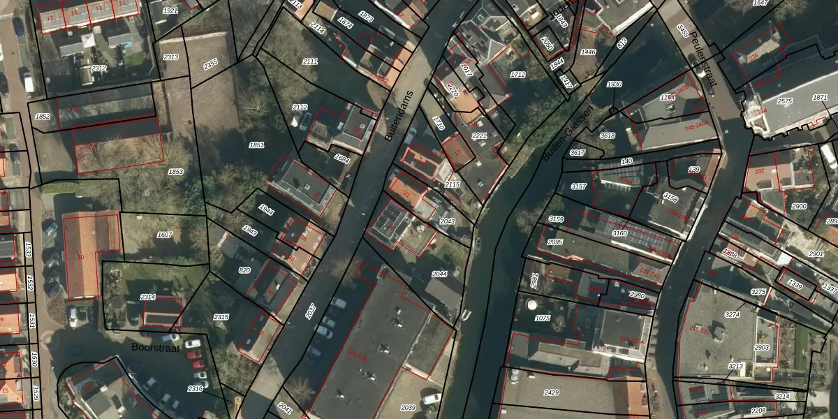 Het perceel waarop Buitendams 21 staat heeft een oppervlakte van 175 m². Dit is een middelgroot perceel. De perceeloppervlakte wordt geregistreerd door het Kadaster. Gedetailleerde informatie over de maten van dit perceel kunt u vinden in het rapport Kadastrale kaart met maatvoering van Buitendams 21.