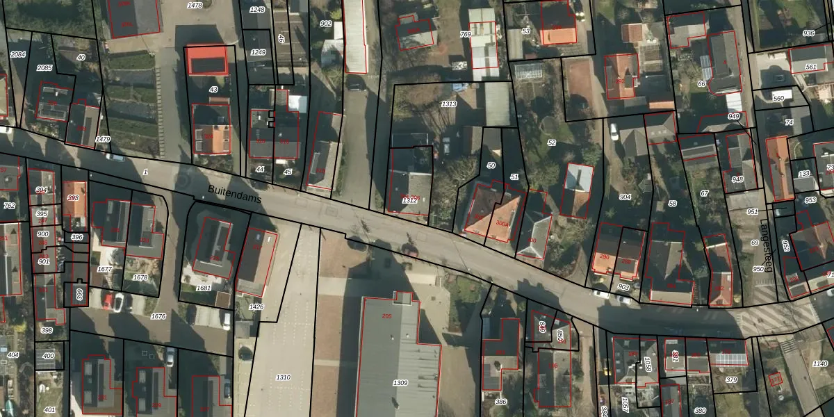 Het perceel waarop Buitendams 304 staat heeft een oppervlakte van 185 m². Dit is een middelgroot perceel. De perceeloppervlakte wordt geregistreerd door het Kadaster. Gedetailleerde informatie over de maten van dit perceel kunt u vinden in het rapport Kadastrale kaart met maatvoering van Buitendams 304.