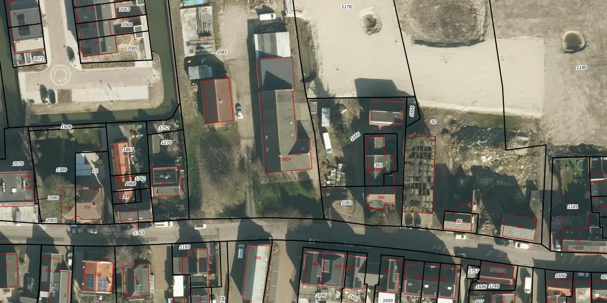 Het perceel waarop Buitendams 360-A staat heeft een oppervlakte van 3684 m². Dit is een zeer groot perceel. De perceeloppervlakte wordt geregistreerd door het Kadaster. Gedetailleerde informatie over de maten van dit perceel kunt u vinden in het rapport Kadastrale kaart met maatvoering van Buitendams 360-A.