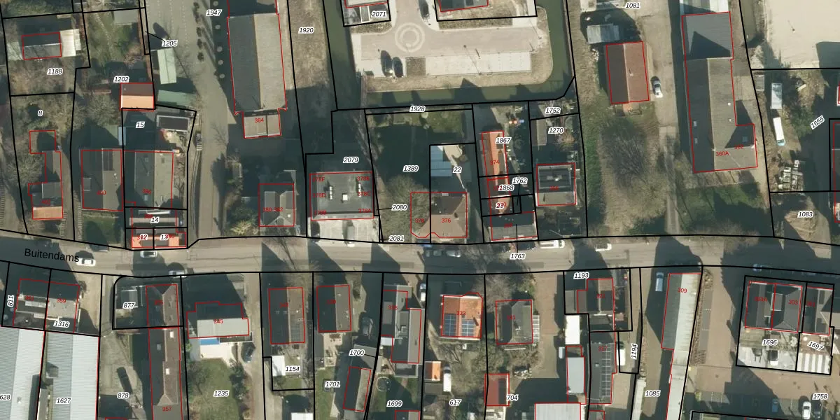 Het perceel waarop Buitendams 378 staat heeft een oppervlakte van 500 m². Dit is een groot perceel. De perceeloppervlakte wordt geregistreerd door het Kadaster. Gedetailleerde informatie over de maten van dit perceel kunt u vinden in het rapport Kadastrale kaart met maatvoering van Buitendams 378.