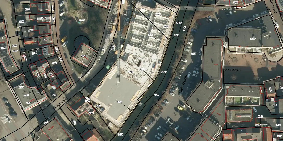 Het perceel waarop Buitendams 43-A staat heeft een oppervlakte van 2291 m². Dit is een zeer groot perceel. De perceeloppervlakte wordt geregistreerd door het Kadaster. Gedetailleerde informatie over de maten van dit perceel kunt u vinden in het rapport Kadastrale kaart met maatvoering van Buitendams 43-A.