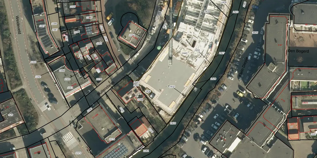 Het perceel waarop Buitendams 47-E staat heeft een oppervlakte van 2291 m². Dit is een zeer groot perceel. De perceeloppervlakte wordt geregistreerd door het Kadaster. Gedetailleerde informatie over de maten van dit perceel kunt u vinden in het rapport Kadastrale kaart met maatvoering van Buitendams 47-E.