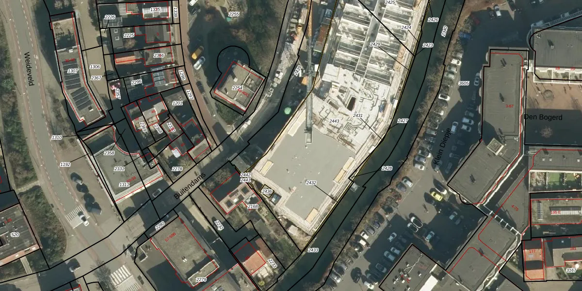 Het perceel waarop Buitendams 47-F staat heeft een oppervlakte van 2291 m². Dit is een zeer groot perceel. De perceeloppervlakte wordt geregistreerd door het Kadaster. Gedetailleerde informatie over de maten van dit perceel kunt u vinden in het rapport Kadastrale kaart met maatvoering van Buitendams 47-F.