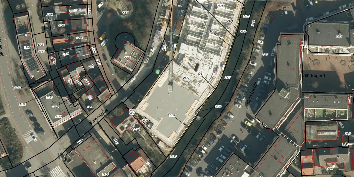 Het perceel waarop Buitendams 47-G staat heeft een oppervlakte van 2291 m². Dit is een zeer groot perceel. De perceeloppervlakte wordt geregistreerd door het Kadaster. Gedetailleerde informatie over de maten van dit perceel kunt u vinden in het rapport Kadastrale kaart met maatvoering van Buitendams 47-G.