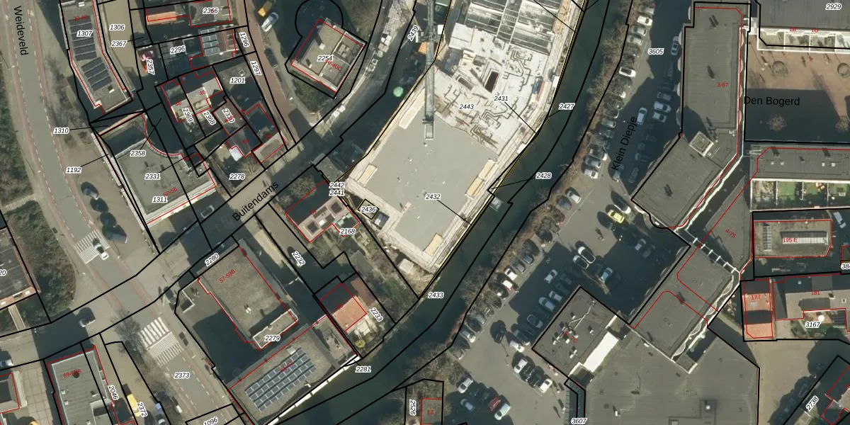 Het perceel waarop Buitendams 47-D staat heeft een oppervlakte van 2291 m². Dit is een zeer groot perceel. De perceeloppervlakte wordt geregistreerd door het Kadaster. Gedetailleerde informatie over de maten van dit perceel kunt u vinden in het rapport Kadastrale kaart met maatvoering van Buitendams 47-D.