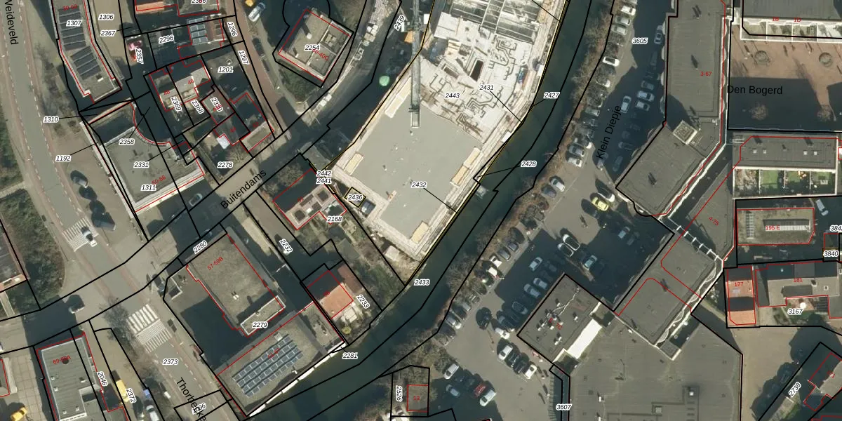 Het perceel waarop Buitendams 49-F staat heeft een oppervlakte van 2291 m². Dit is een zeer groot perceel. De perceeloppervlakte wordt geregistreerd door het Kadaster. Gedetailleerde informatie over de maten van dit perceel kunt u vinden in het rapport Kadastrale kaart met maatvoering van Buitendams 49-F.