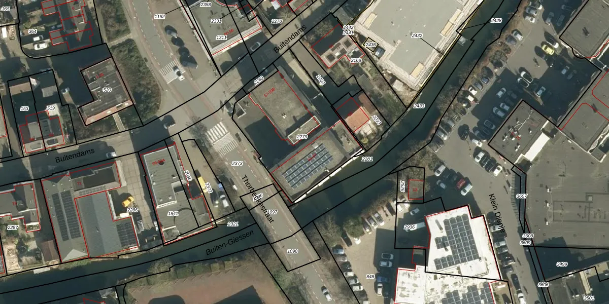 Het perceel waarop Buitendams 63 staat heeft een oppervlakte van 1081 m². Dit is een zeer groot perceel. De perceeloppervlakte wordt geregistreerd door het Kadaster. Gedetailleerde informatie over de maten van dit perceel kunt u vinden in het rapport Kadastrale kaart met maatvoering van Buitendams 63.