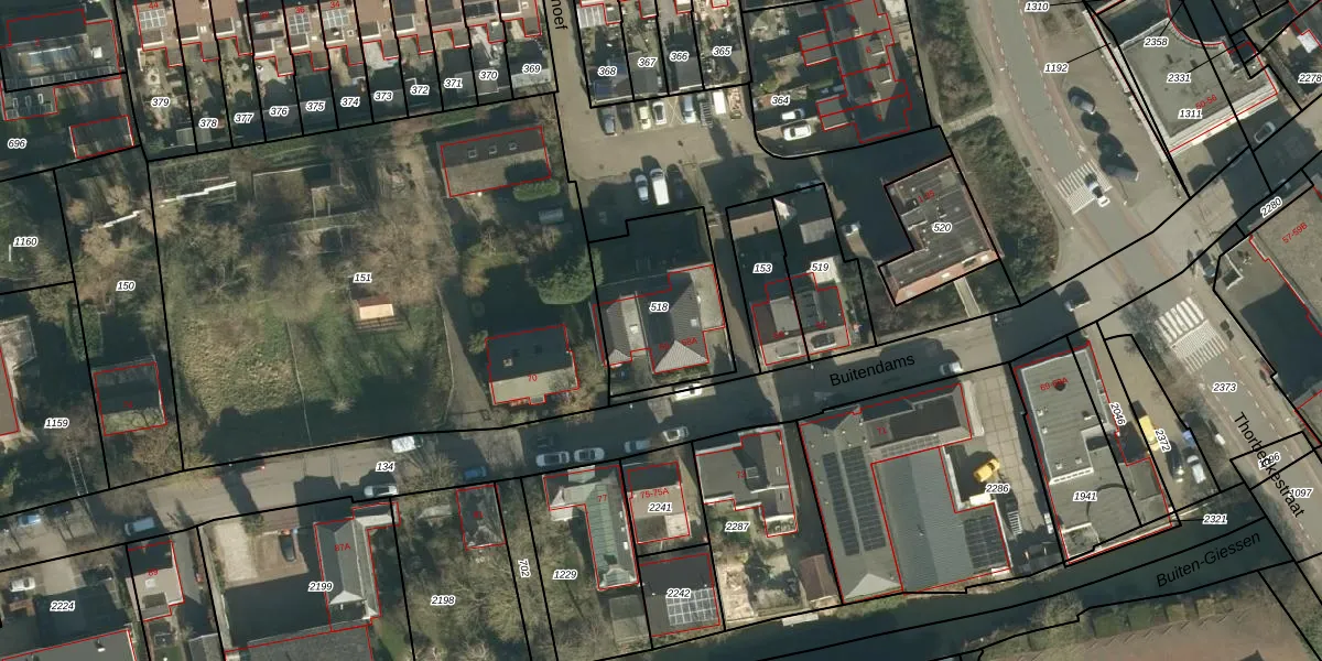 Buitendams 68 is gelegen op kadastraal perceel HDV00K518. Deze kadastrale aanduiding is uniek en wordt gebruikt door het Kadaster om eigendomsrechten en andere zakelijke rechten vast te leggen. Het perceel maakt onderdeel uit van de kadastrale gemeente Hardinxveld-Giessendam.