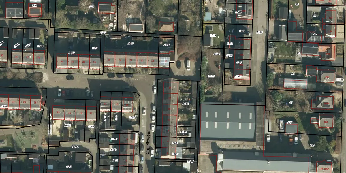 Het perceel waarop Capelleweer 14 staat heeft een oppervlakte van 607 m². Dit is een groot perceel. De perceeloppervlakte wordt geregistreerd door het Kadaster. Gedetailleerde informatie over de maten van dit perceel kunt u vinden in het rapport Kadastrale kaart met maatvoering van Capelleweer 14.