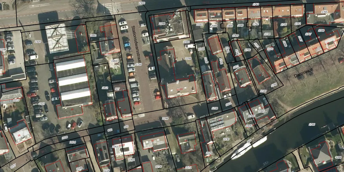 Het perceel waarop Damstraat 24 staat heeft een oppervlakte van 948 m². Dit is een groot perceel. De perceeloppervlakte wordt geregistreerd door het Kadaster. Gedetailleerde informatie over de maten van dit perceel kunt u vinden in het rapport Kadastrale kaart met maatvoering van Damstraat 24.
