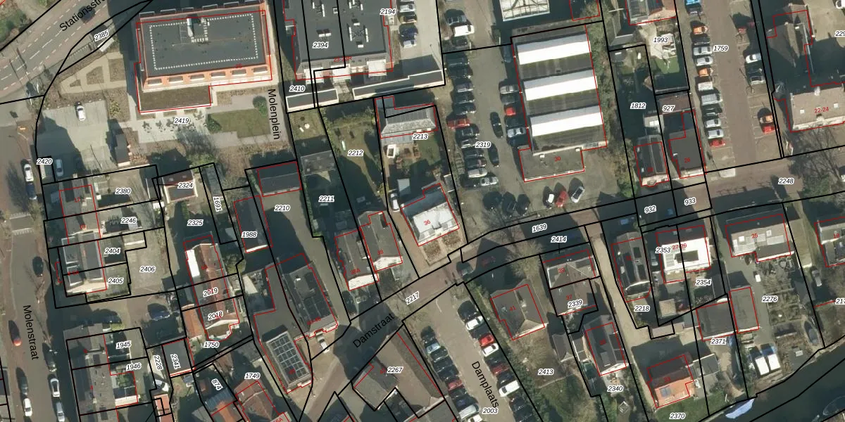 Gebruik de zoekbalk of klik op een perceel voor informatie over de adressen binnen dit perceel.